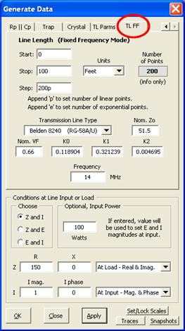 - New "TL Parms" tab under "Generate Data" added to generate transmission line (TL) parameter data based on mathematical models. May be used stand-alone or as a way to compare with measured data.